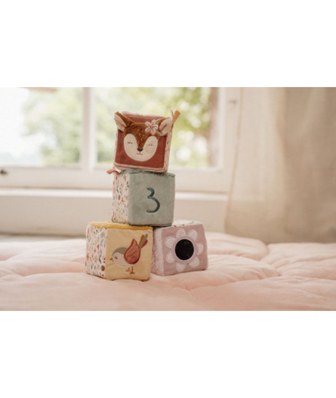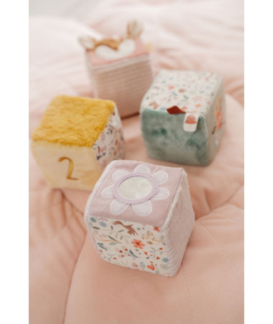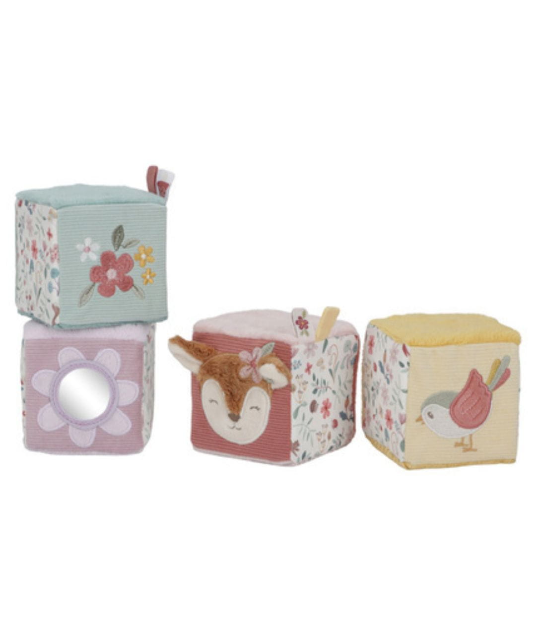 4 miękkie kostki aktywizujące Fairy Garden, zabawki sensoryczne Little Dutch, kostki edukacyjne dla niemowląt, pierwsze zabawki dla maluszka, zabawki rozwijające koordynację ręka-oko, prezent dla niemowlaka 0+, pastelowe zabawki dla dzieci.