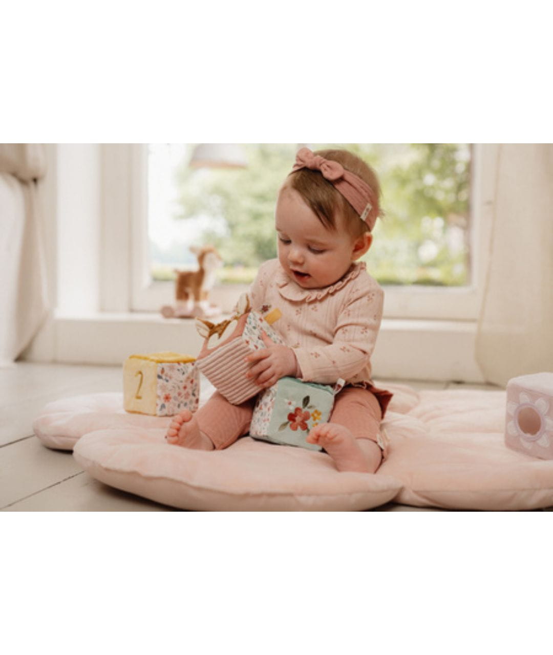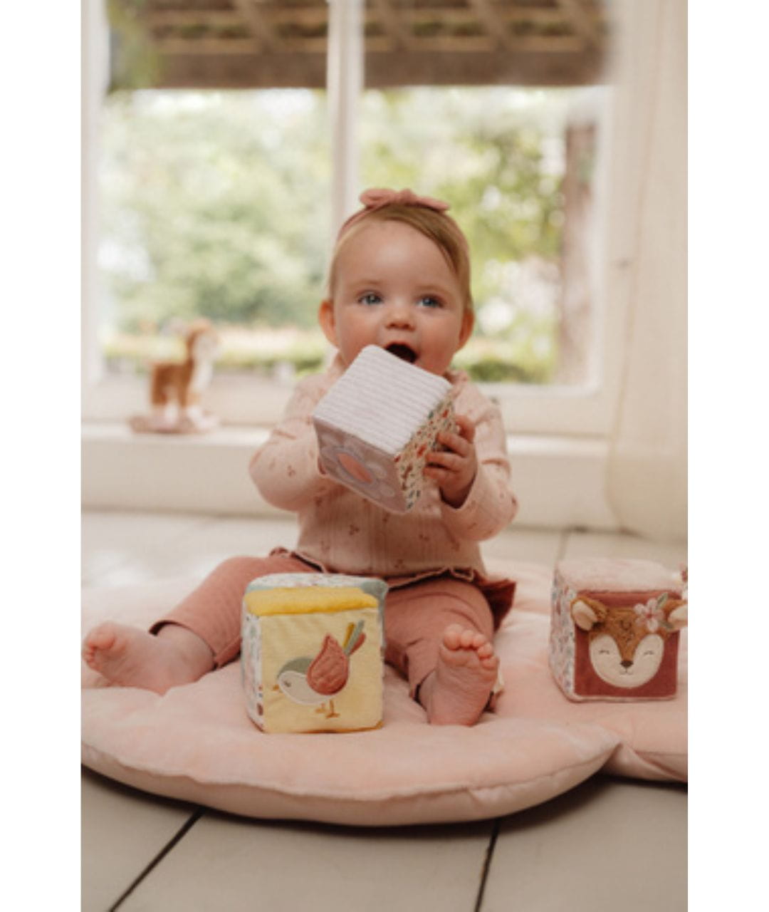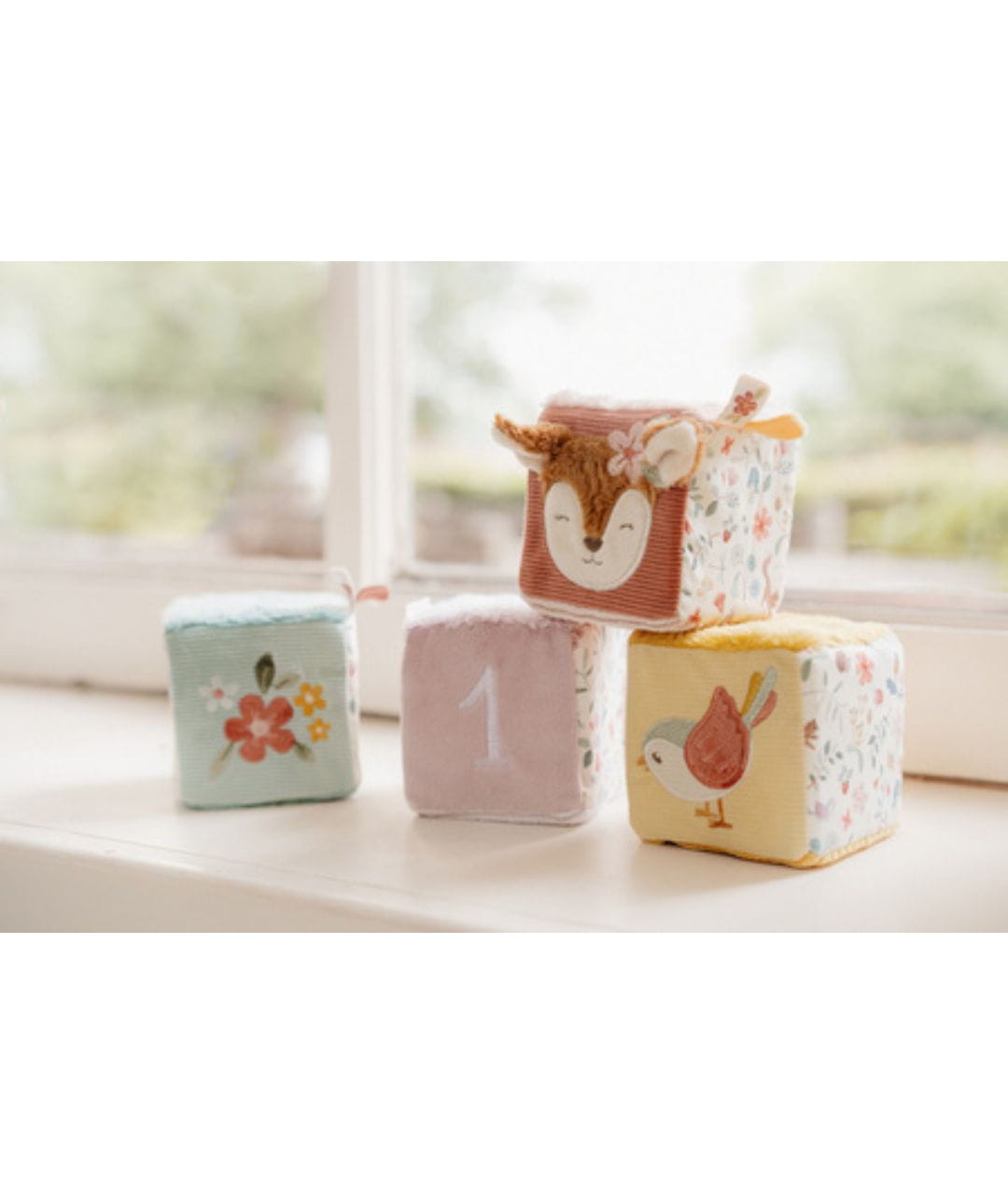 4 miękkie kostki aktywizujące Fairy Garden, zabawki sensoryczne Little Dutch, kostki edukacyjne dla niemowląt, pierwsze zabawki dla maluszka, zabawki rozwijające koordynację ręka-oko, prezent dla niemowlaka 0+, pastelowe zabawki dla dzieci.