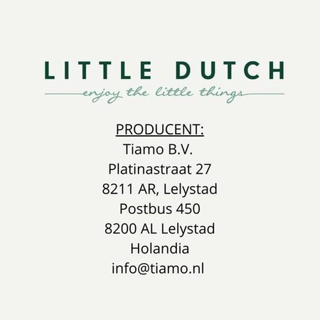 Little Dutch to holenderska firma rodzinna tworzona z myślą o najmłodszych. Marka oferuje tekstylia z bawełny organicznej z certyfikatem Oeko-Tex, akcesoria do pokoików dziecięcych, zabawki sensoryczne oraz szeroki wybór drewnianych zabawek i akcesoriów kuchennych. Produkty charakteryzują się pastelową kolorystyką, wysoką jakością i wyjątkowym wzornictwem.