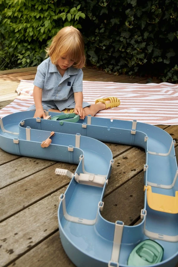 Ten zestaw to zaproszenie do niekończących się wodnych przygód, gdzie mali odkrywcy mogą kształtować swoje miniaturowe światy. Niech Twoje dziecko stanie się małym inżynierem, kierując łódkami przez kręte kanały, obracając koła wodne i podnosząc śluzy. To idealny sposób, aby w zabawny i interaktywny sposób uczyć się, jak woda się porusza i płynie.