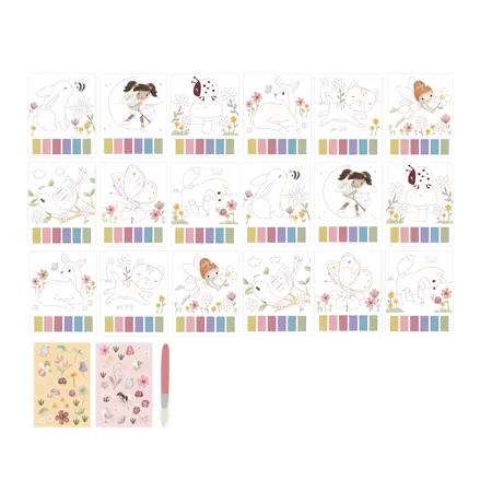 Zestaw kolorowanek wodnych i naklejek Rosa & Friends z kolekcji Fairy Garden od Little Dutch